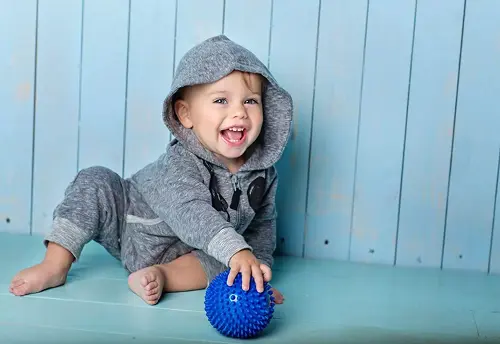 Он с удовольствием занимается гимнастикой и играет со взрослыми в активные игры;