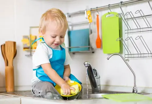 Он замечает, если одежда стала мокрой или грязной, и сообщает о своем неудовольствии. Начинает осваивать навыки гигиены (дает понять, что хочет в туалет). При умывании пытается показать, что может делать это сам.